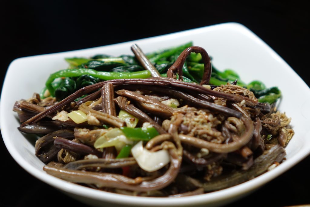 Various vegetables (spinach, bean sprouts, fernbrake, zucchini)